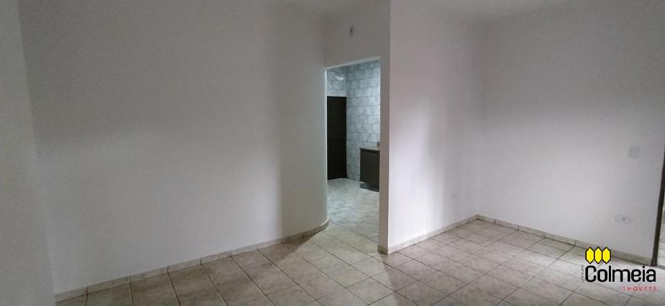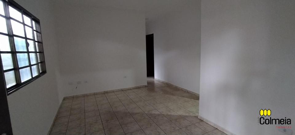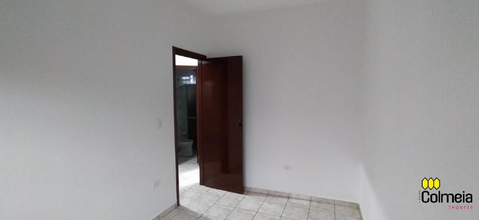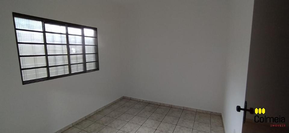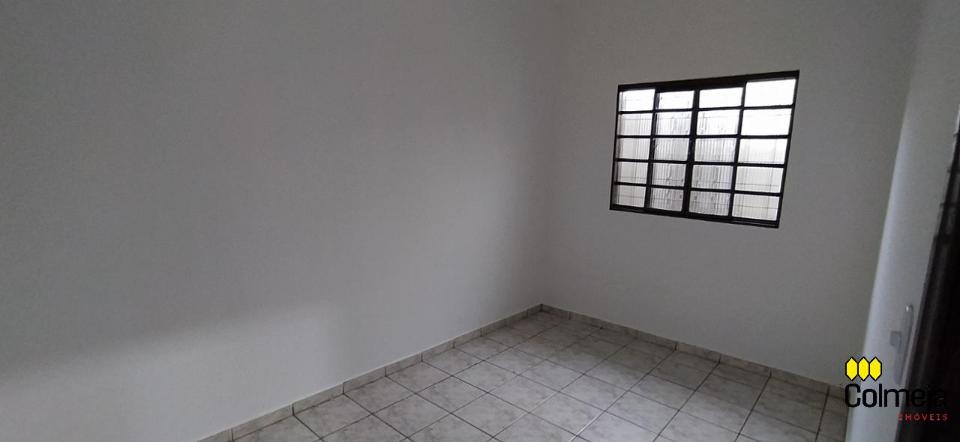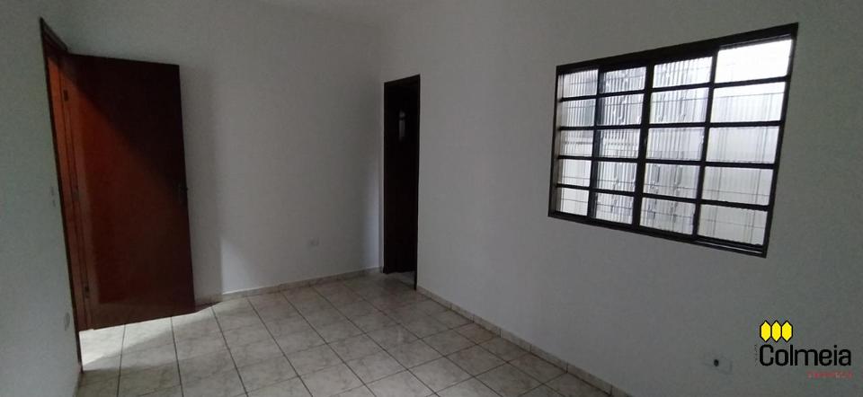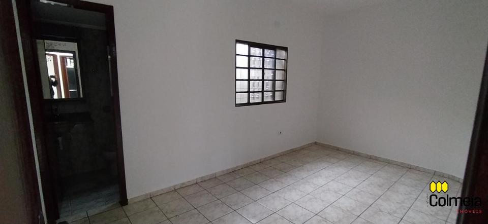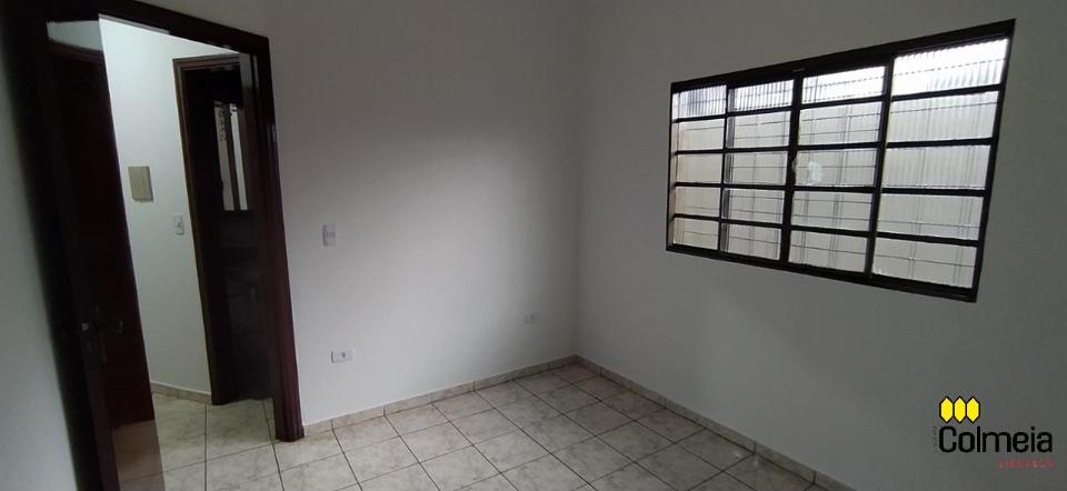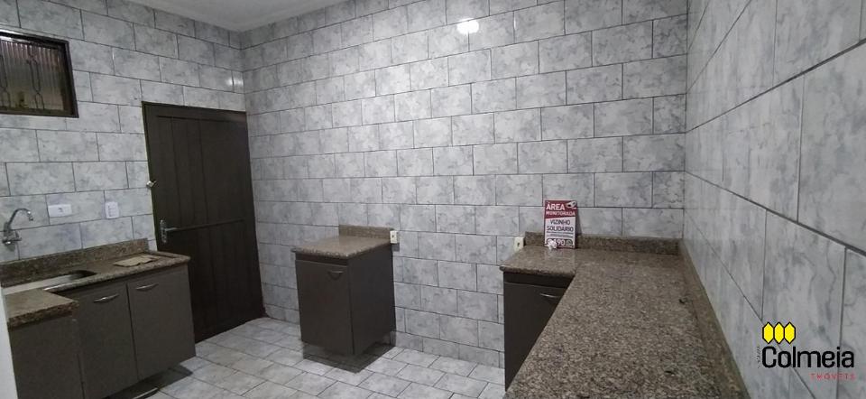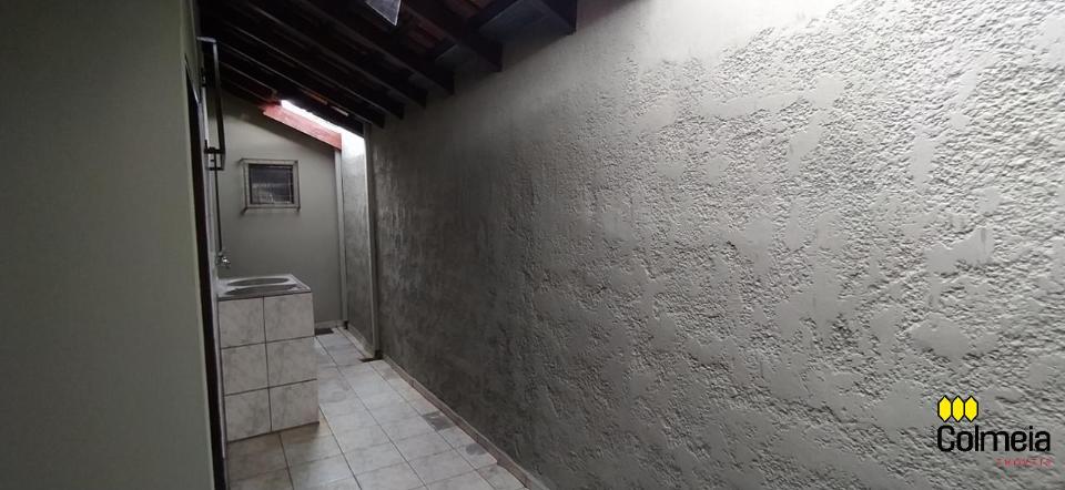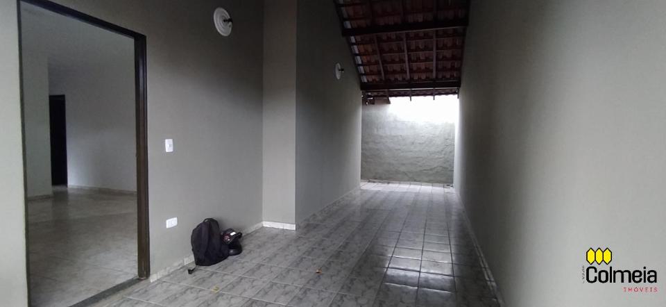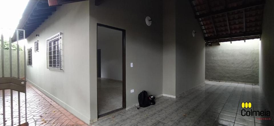 Garagem coberta, dois quartos, um banheiro social, uma suíte, cozinha e área de serviço