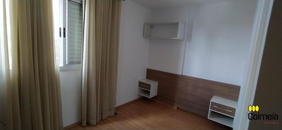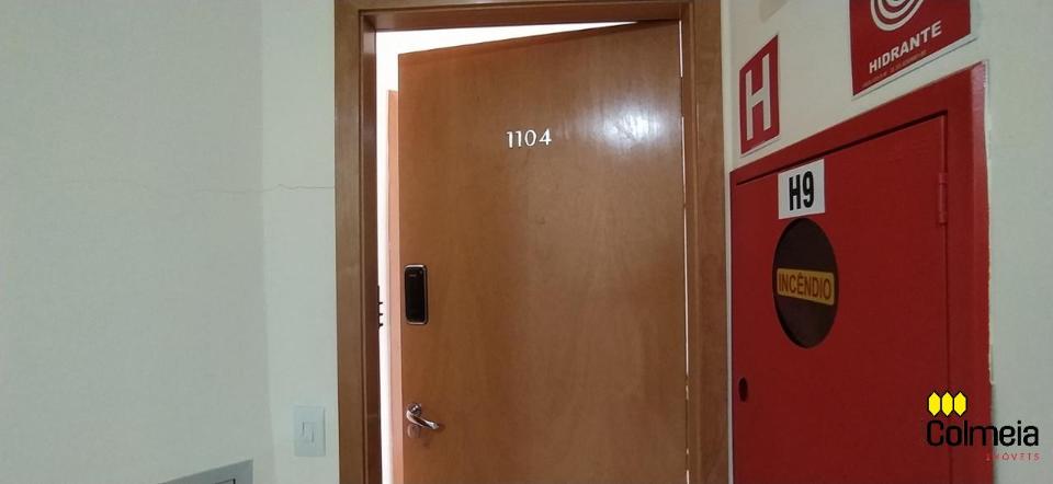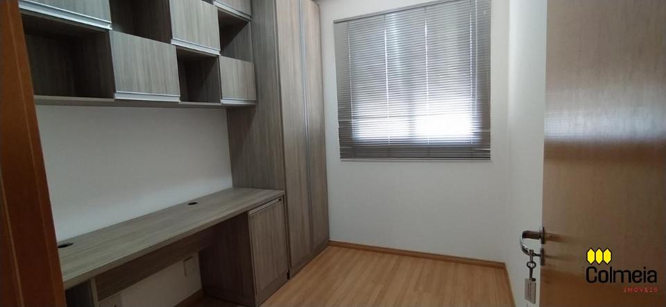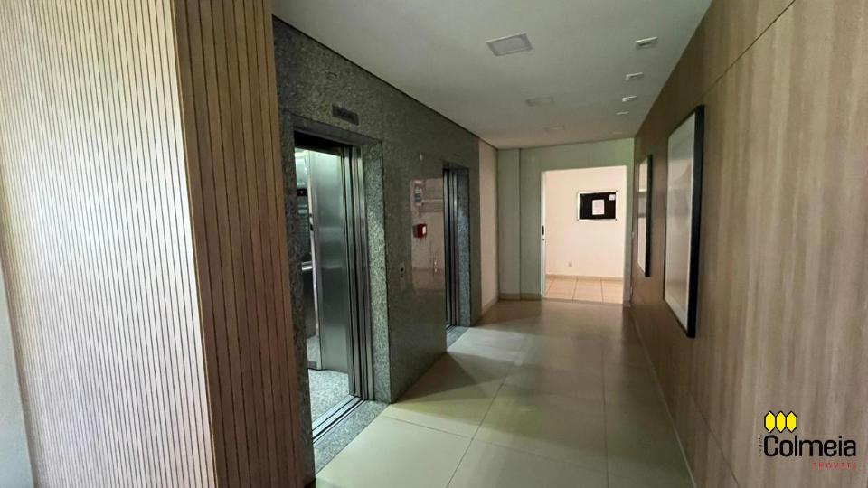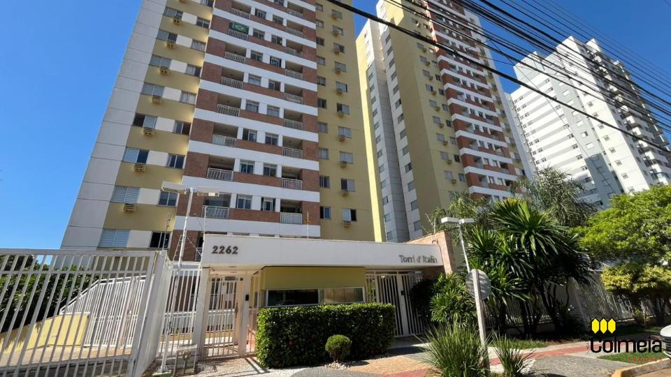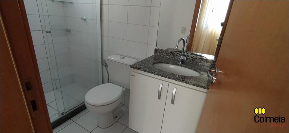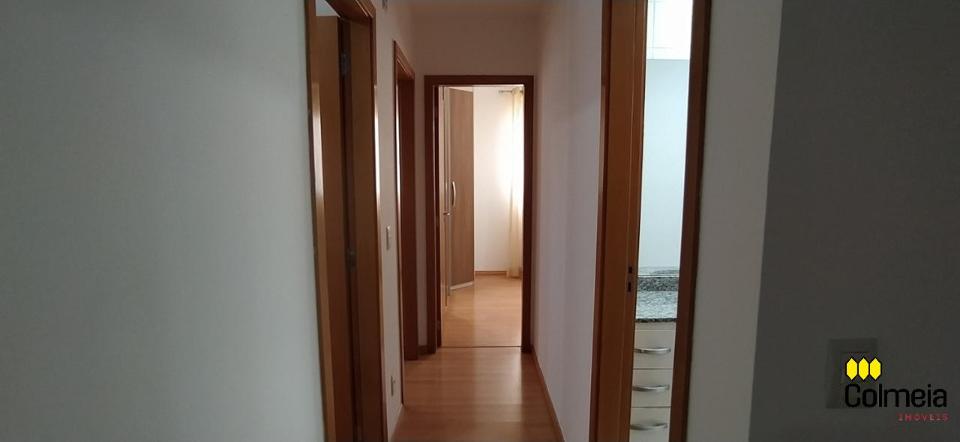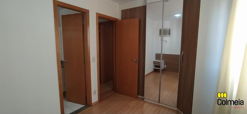 Sala de estar ampla com ar condicionado, sacada com churrasqueira privativa e área de serviço, banheiro social com box de vidro e armário na pia, uma suíte com armário embutido e ar condicionado, banheiro da suíte com box blindex e gabinete na pia, quarto com armário embutido e ar condicionado, cozinha com armário embutido e garagem coberta para um veículo.